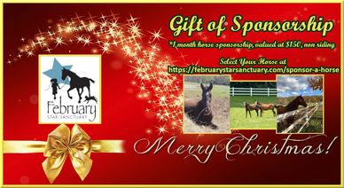 Say "Merry Christmas!" or "Happy Holidays!" with the gift of 1 month of Level 1 horse sponsorship, for a $100 donation. Your gift recipient can choose from our available horses and create a special bond from anywhere, including their home. Learn more about sponsorship and see available horses here: Sponsor a Horse